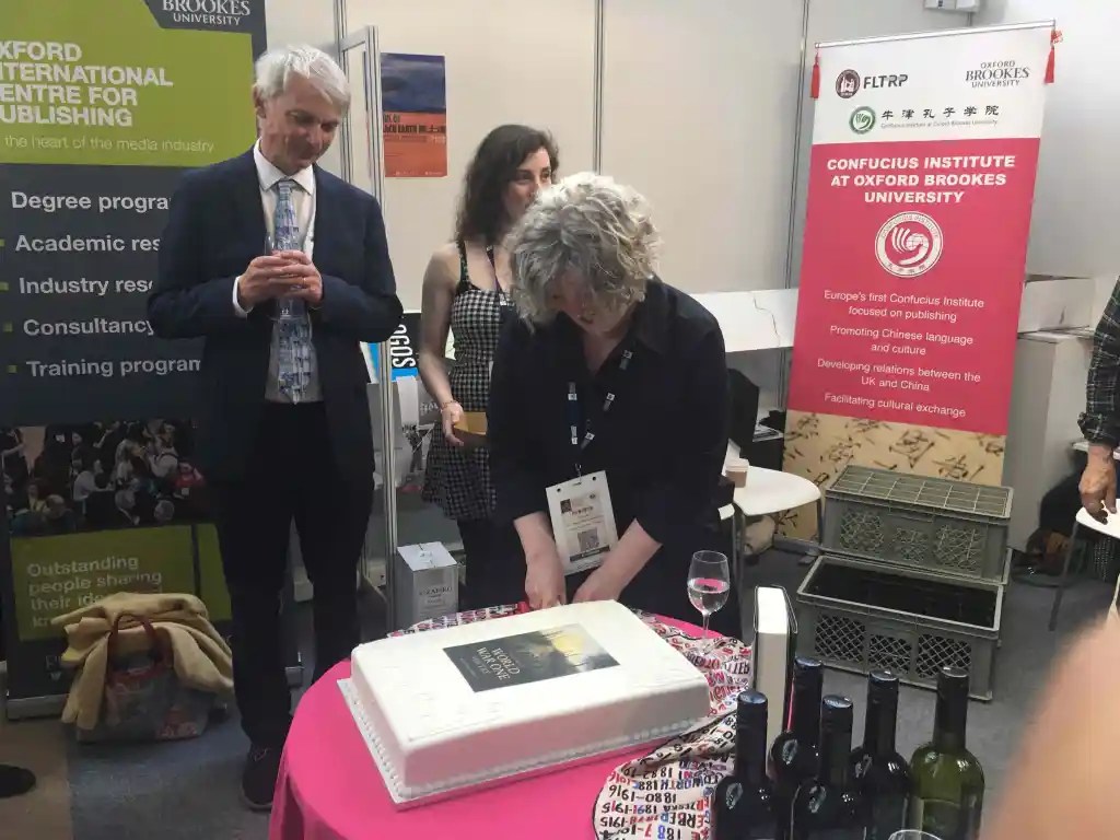The book, published by Cambridge University Press in January 2023, was edited by Dr Jane Potter. She is the Reader (Arts) and Postgraduate Research Tutor for Publishing at Oxford Brookes University. She was there to cut the cake and give a speech after a brief introduction by Prof Angus Phillips, the host of the reception and also the Director of the Oxford International Centre for Publishing.